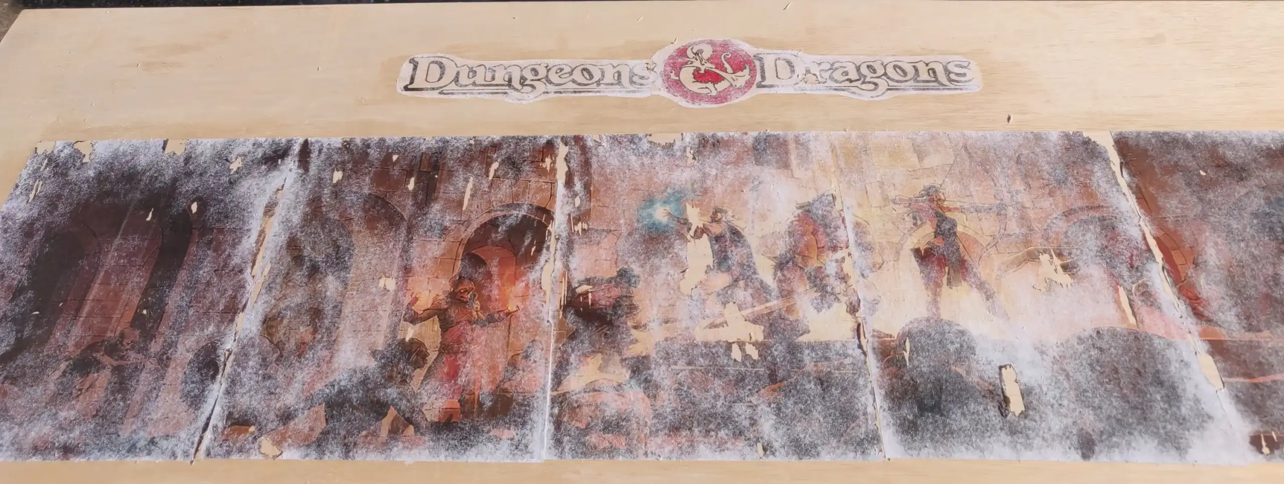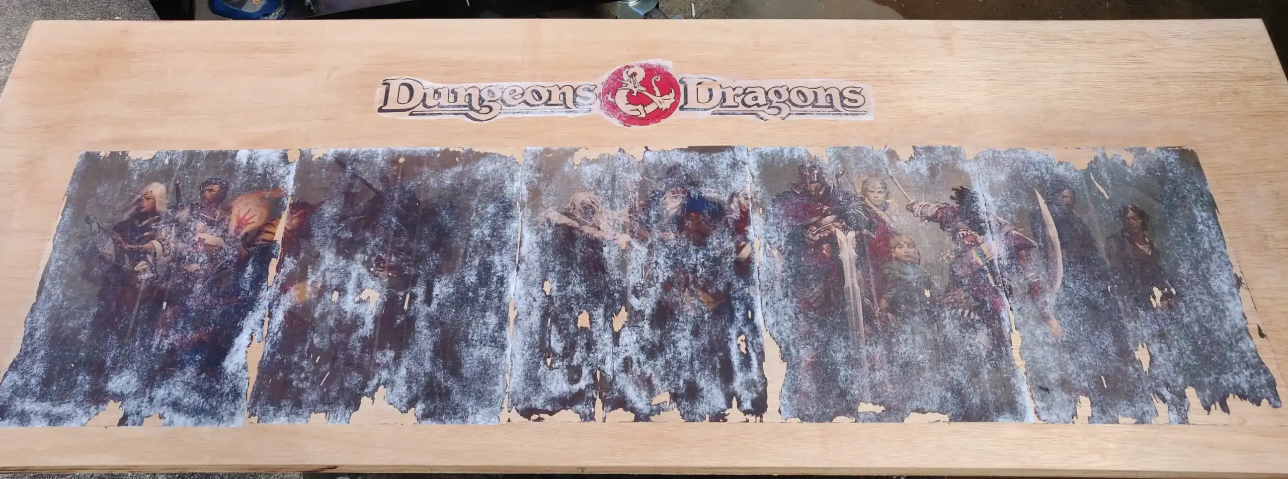 Did some new laser transfers for my gaming table today. Just about halfway through removing the paper residue. I considered some other game logos, but even though D&D is no longer my first gaming choice, it holds the most nostalgia for me.